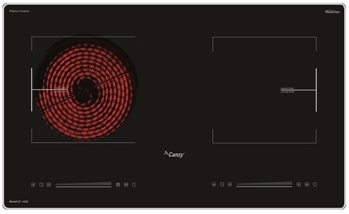 Bếp đôi: 01 từ 01 hồng ngoại, sử dụng mặt kính Platinum Ceramic vát 4 cạnh bo viền hợp kim nhôm sang trọng Sử dụng bản mạch mâm từ sản xuất theo công nghệ Châu âu