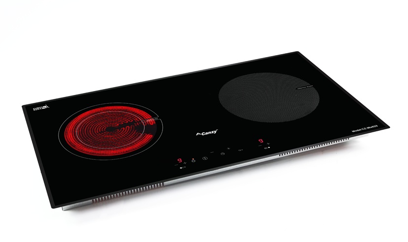 Bếp đôi: 1 hồng ngoại + 1 từ, sử dụng mặt kính Schott Ceran vát 4 cạnh bo góc sang trọng