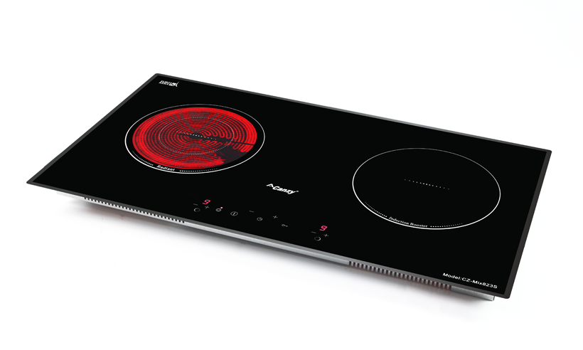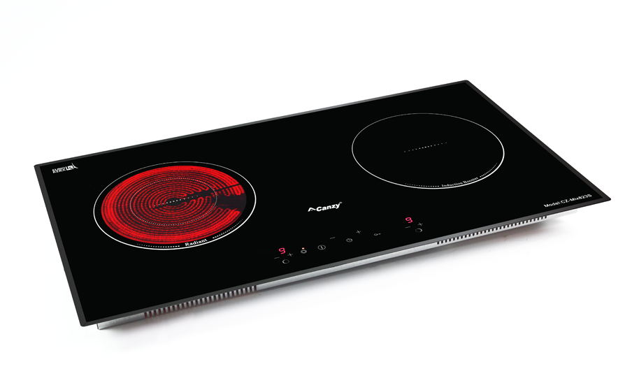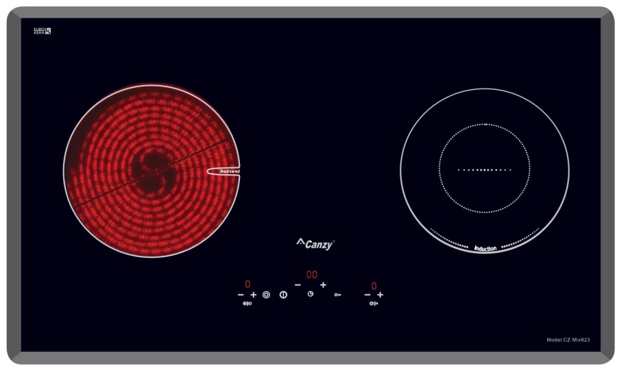 Bếp đôi: 1 hồng ngoại + 1 từ, sử dụng mặt kính EUROKERA Pháp vát 4 cạnh bo góc sang trọng