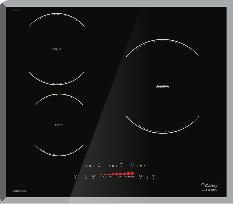 Bàn phím điều khiển trượt Slider 9 mức công suất + Booster chung cho 3 vùng nấu