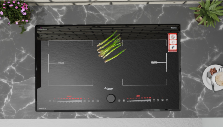 Bếp đôi: 2 vùng từ, sử dụng mặt kính Platinum Ceramic vát 4 cạnh bo 4 góc sang trọng Sử dụng bản mạch mâm từ sản xuất theo công nghệ Châu âu