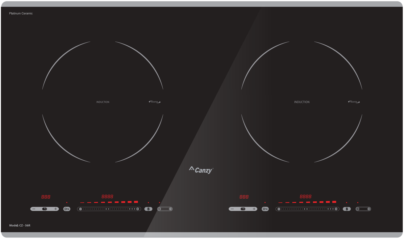 Bếp đôi: 2 vùng từ, sử dụng mặt kính Platinum Ceramic vát 2 cạnh dài, bo 4 góc sang trọng