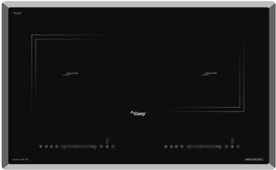 Bếp đôi: 2 vùng từ sử dụng mặt kính Vitro Ceramic vát 4 cạnh bo góc sang trọng
