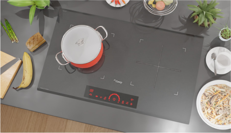 Bếp đôi: 2 vùng từ sử dụng mặt kính Vitro Ceramic phủ sapphire chống xước tới 99% vát 2 cạnh bo góc sang trọng