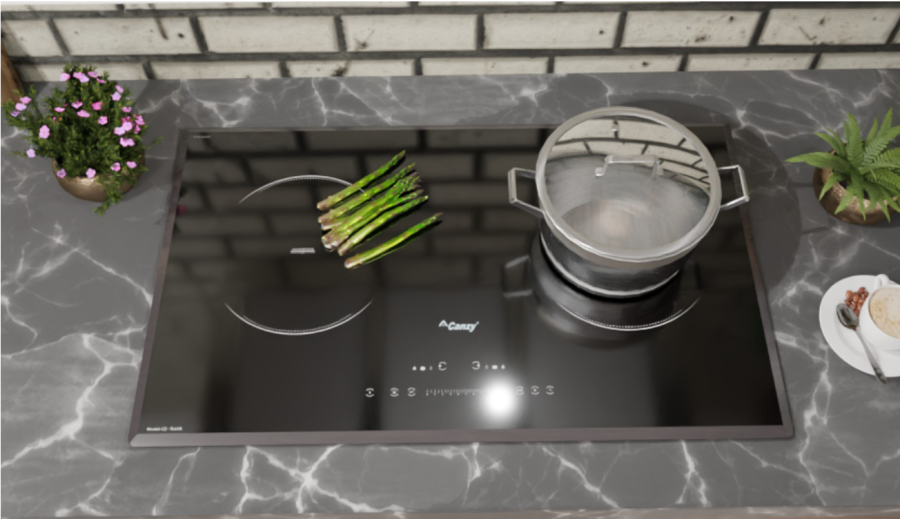 Bếp đôi: 2 vùng từ sử dụng mặt kính Vitro Ceramic vát 4 cạnh bo góc sang trọng