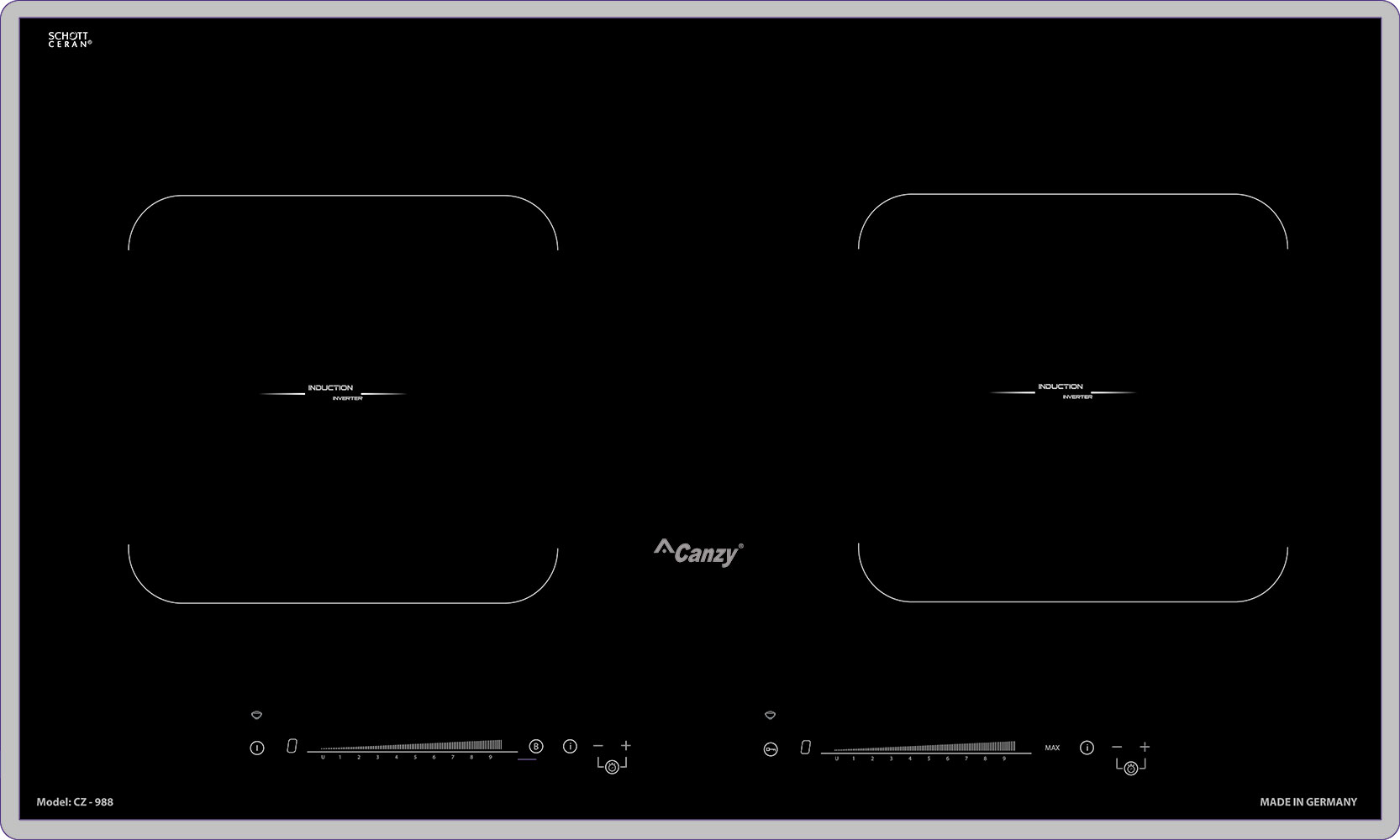 | Mặt kính | Mặt kính Schott Ceran, bộ bảng mạch và mâm từ EGO Đức Chống trầy xước, chịu lực, chịu nhiệt cao |