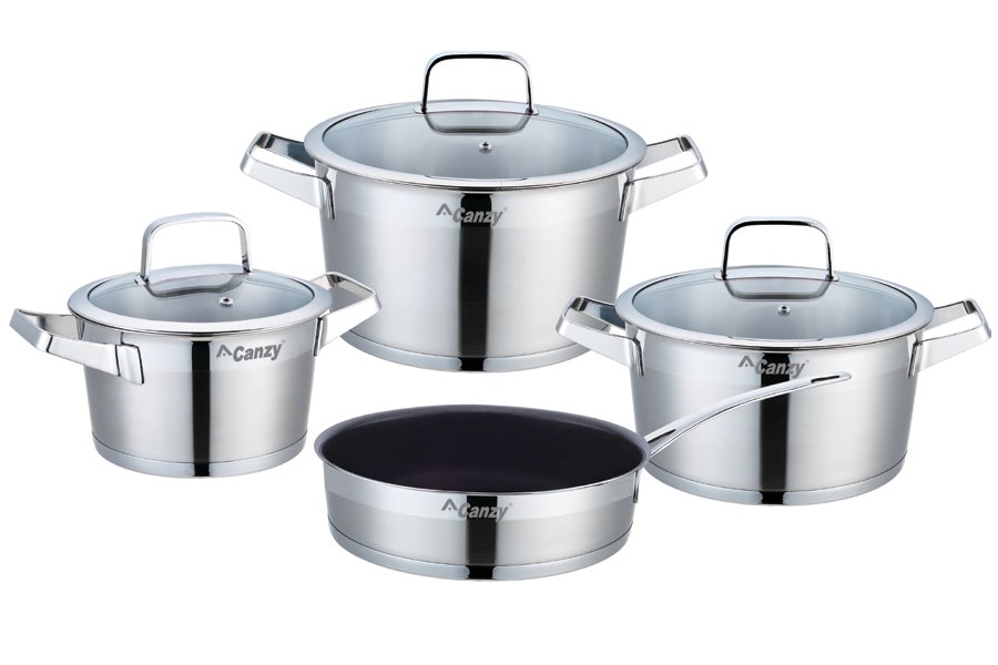 Bộ xoong nồi cao cấp Canzy Rango 4 món được làm từ Inox 304 sáng bóng, không phản ứng với thức ăn và an toàn cho sức khỏe.