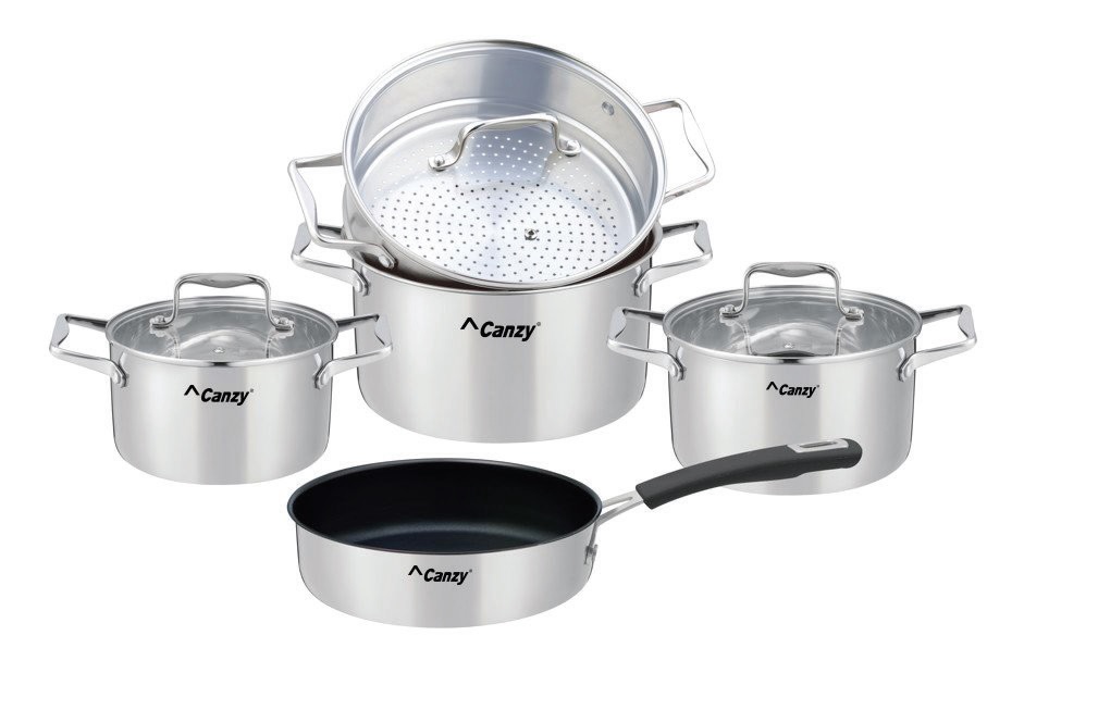 Bộ nồi 5 món: 3 nồi + 1 hấp + 1 chảo