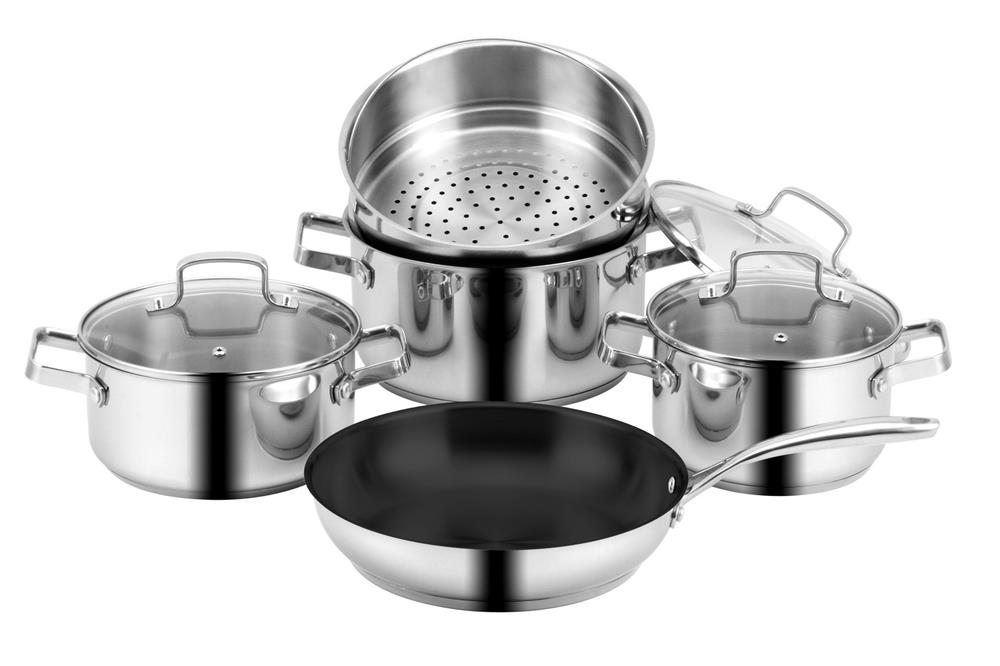 Bộ nồi inox 304 - 18/10 cao cấp gồm bộ nồi và chảo
