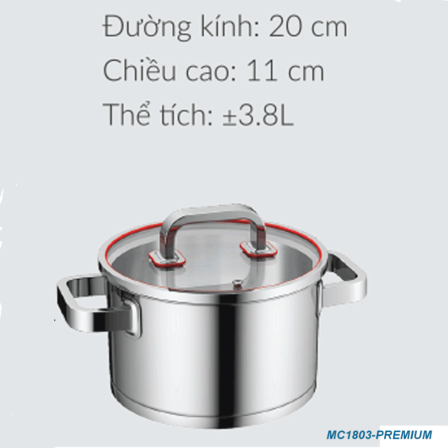 Nồi Nhỡ: Đường kính: Ø20 / Chiều cao: 11cm / Thể tích:±3.8L