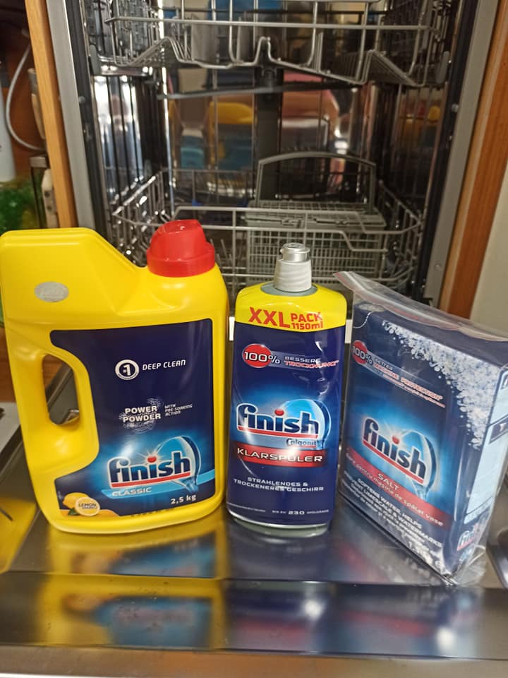 Dùng đủ Combo Finish bột rửa + muối + dầu bóng sẽ giúp chén bát sạch khô hoản hảo và bảo vệ máy bền bỉ nhất.