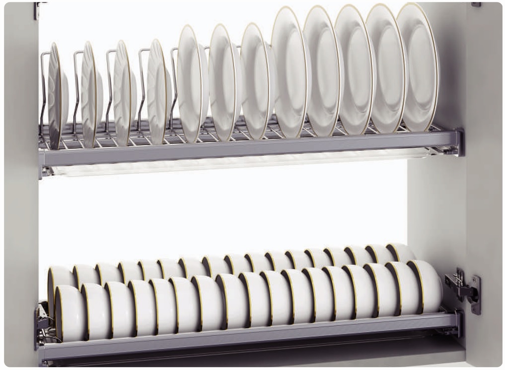 + Tầng trên được thiết kế để bát. Giúp bát khi úp lên có thể dựng thẳng đứng, riêng rẽ và không xô vào nhau.