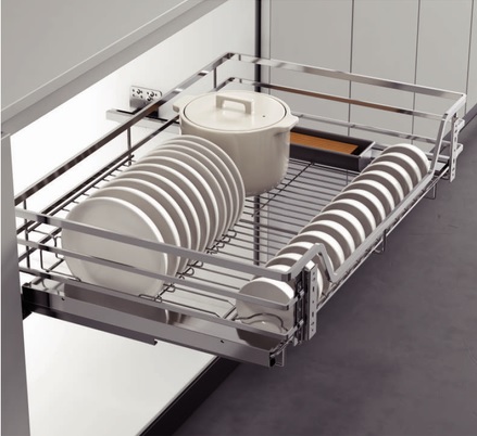 Bộ ray trượt giảm chấn liên kết giữa giá để bát đĩa và thành tủ chắc chắn có tác dụng đóng mở nhẹ nhàng, không gây tiếng ồn.