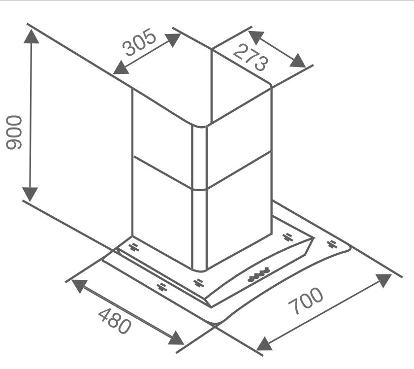 Sản phẩm được thiết kế kiểu dáng tum kính (lắp áp tường) ấn tượng, mặt kính chịu lực cao, máy khử mùi có kích thước nhỏ 700x500x305 (mm) phù hợp với nhiều không gian phòng bếp trong gia đình.