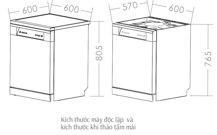 Kích thước sản phẩm đứng độc lập khi tháo nắp trên ( CaoxSâu xRộng): 765x570x600mm