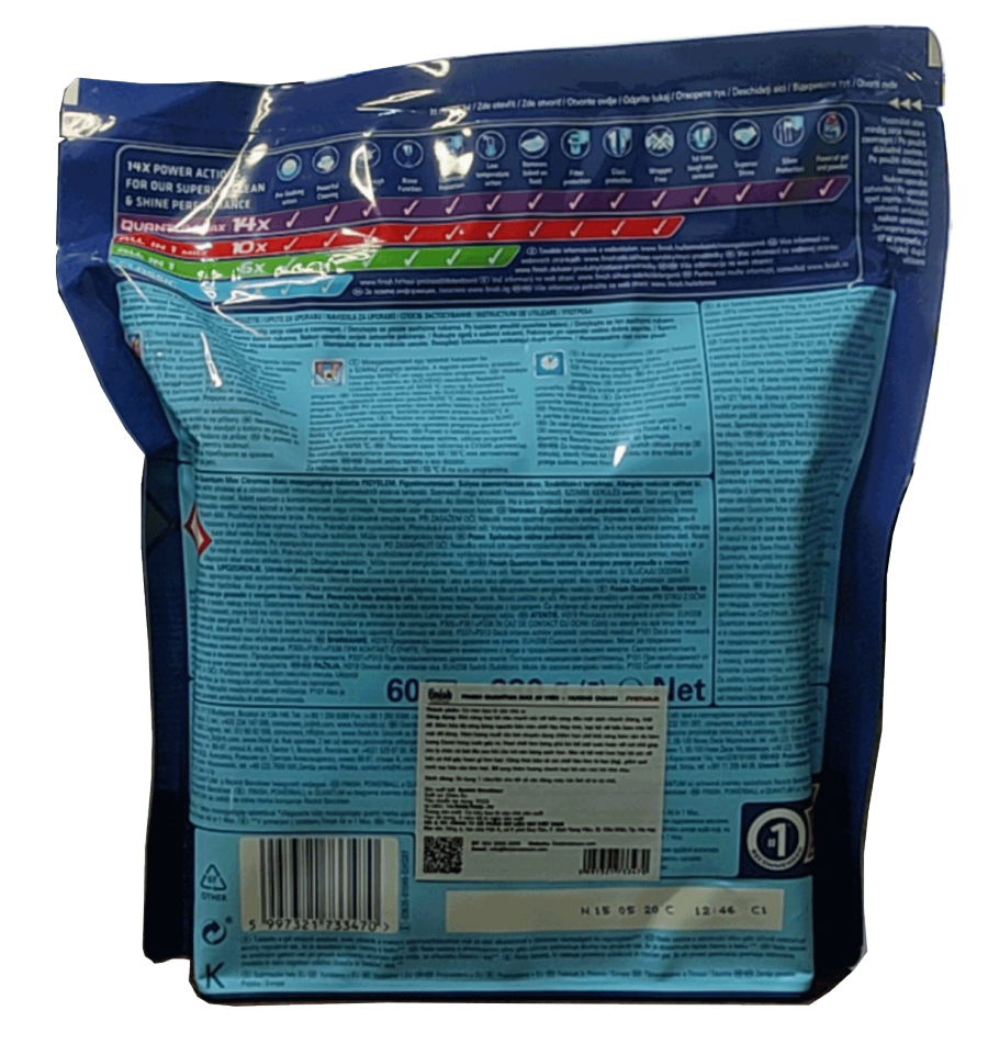 Viên rửa bát Finish Quantum được sản xuất và đóng gói theo tiêu chuẩn Châu Âu. Finish Quantum là mẫu sản phẩm viên rửa bát mới nhất của Finish Calgonit và được các nhà sản xuất máy rửa bát khuyên dùng.